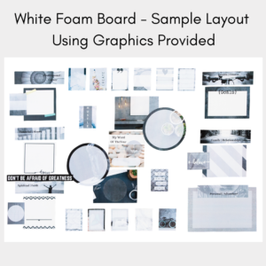 vision board example of white graphics on a white foam board