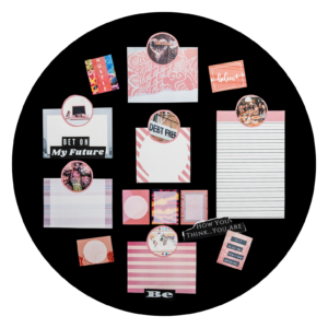 Embrace Pink and Perfect with the Core Strength round vision board kit in shades of pink and coral.