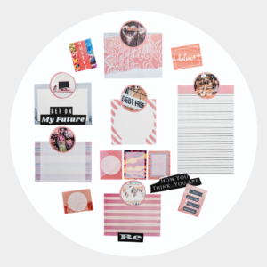 sample round vision board with pink graphics for monochromatic look
