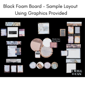 I couldn’t use all the graphics that were provided, but it was fun to choose the best ones for my board. So many options! Love the book, took me a couple hours to complete, but I’m sure some people can do it faster. I’ve always been hesitant to make a vision board because I didn’t really understand how to do it, the kit made it easy.